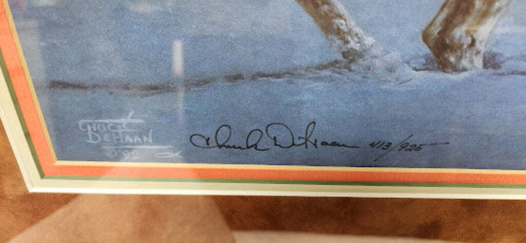 Limited Edition 413/ 925 signed Chuck De Hann. 17 x 25 art, framd 26 x 34